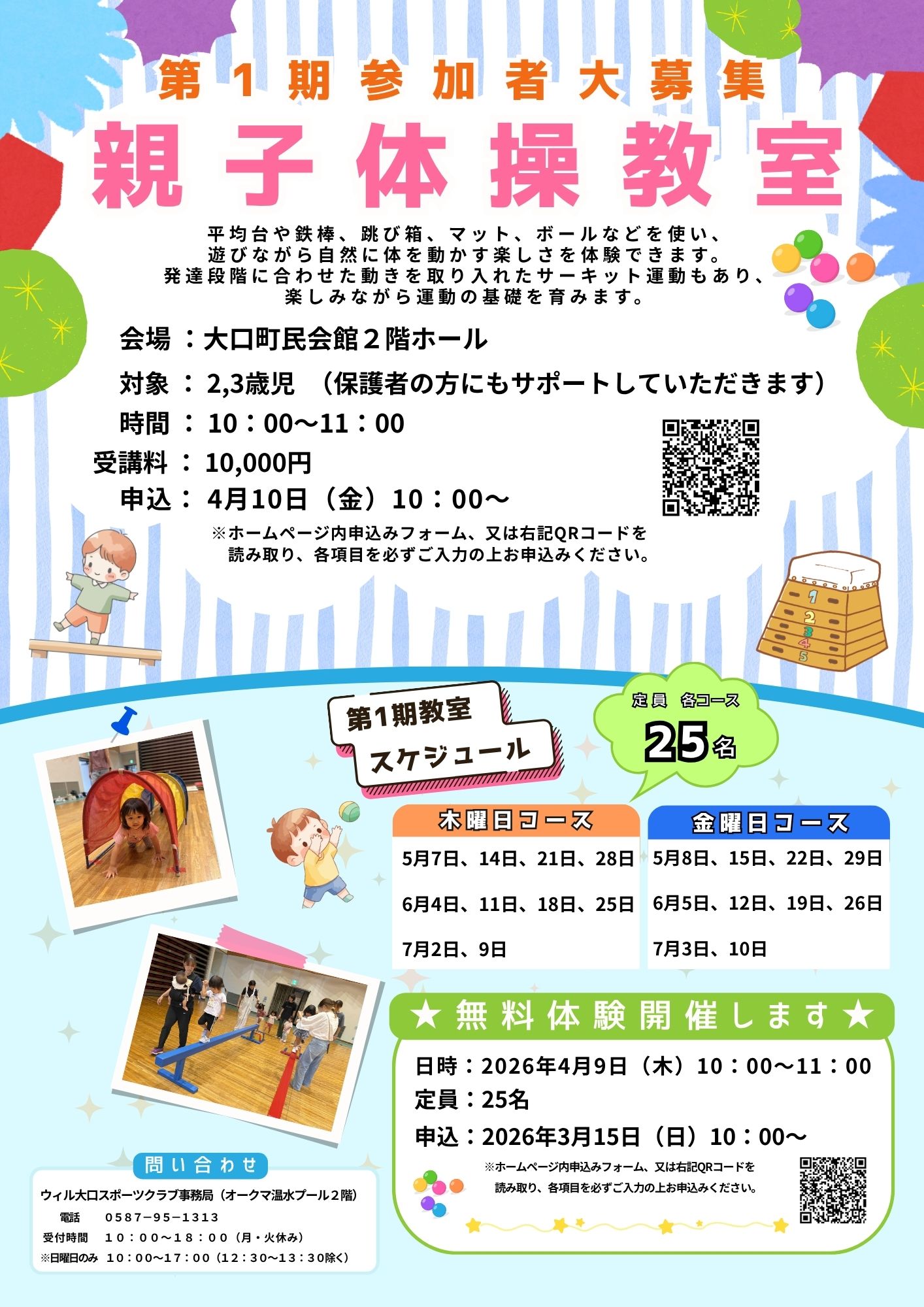 親子体操教室の活動風景は、ウィル大口スポーツクラブInstagramに掲載していますので、ぜひ一度ご覧ください!👇👇👇