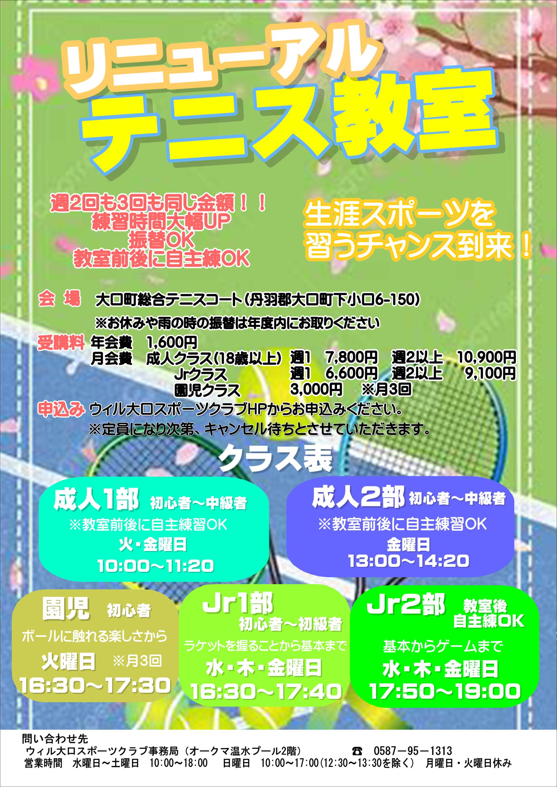 詳しくはウィル大口スポーツクラブまでお問い合わせ下さい。